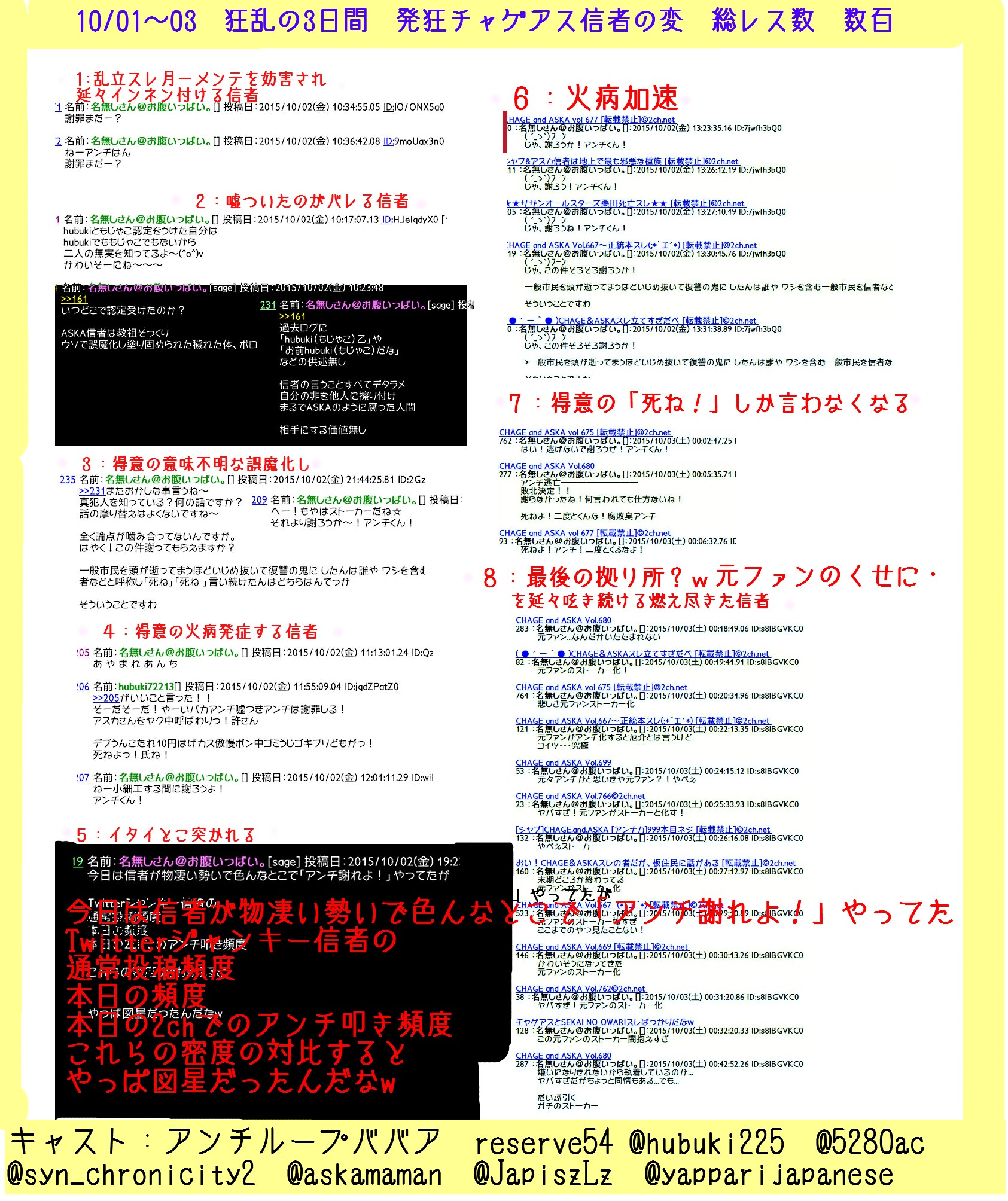 邪魔したところ延々と「アンチ謝れ」を書き連ねだし最終的に3日間に及ぶ狂乱の宴が開催された
