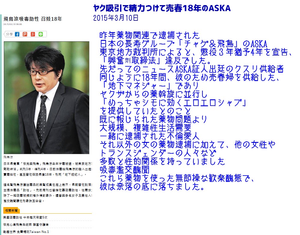 ASKA台湾から復帰記事の3キーパーソンが分かりました